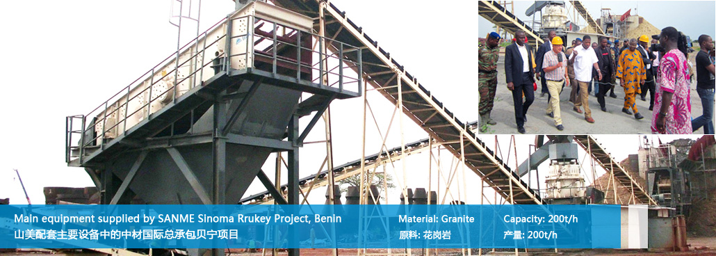 贝宁砂石骨料生产线是益达注册与中材国际合作,在贝宁承建的150吨花岗岩生产线项目。此项目中益达注册提供了包括颚式破碎机、液压圆锥破碎机、圆振动筛和振动给料机在内的解决方案,投入以来一直运行良好,获得了贝宁总统的多次参观与肯定。